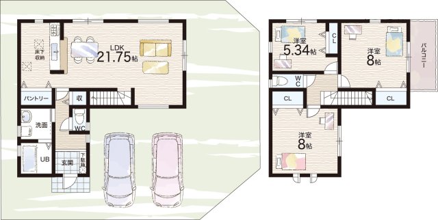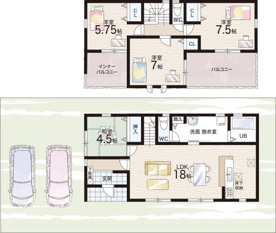 - ※完成予想図やCG合成画像は、門塀・植栽・庭・外観等、実際とは多少異なる場合があります。