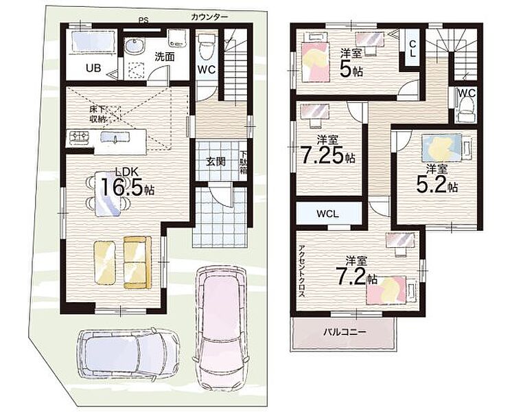 - ※完成予想図やCG合成画像は、門塀・植栽・庭・外観等、実際とは多少異なる場合があります。
