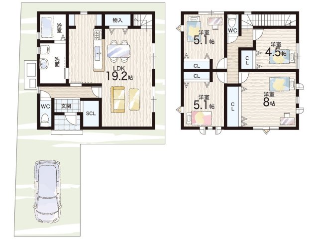 - ※完成予想図やCG合成画像は、門塀・植栽・庭・外観等、実際とは多少異なる場合があります。