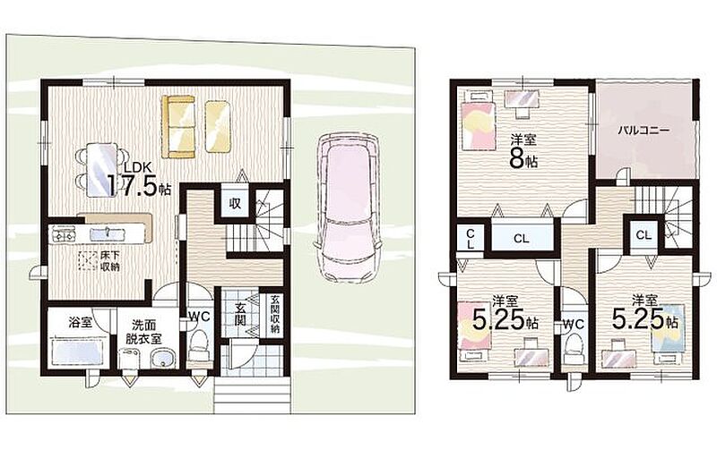 - ※完成予想図やCG合成画像は、門塀・植栽・庭・外観等、実際とは多少異なる場合があります。