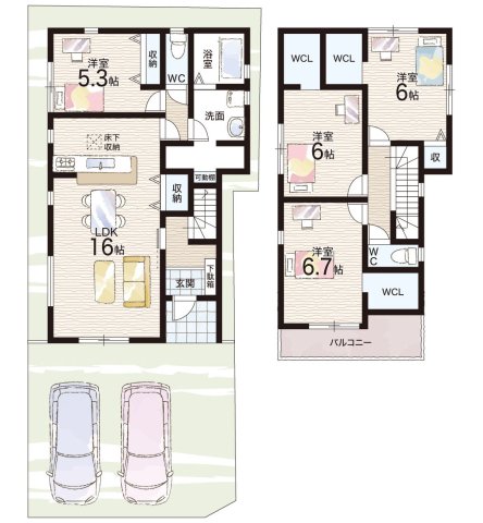2号地 間取り 4LDK 価格 2980万円 建物面積 104.08m2 土地面積 137.46m2 -