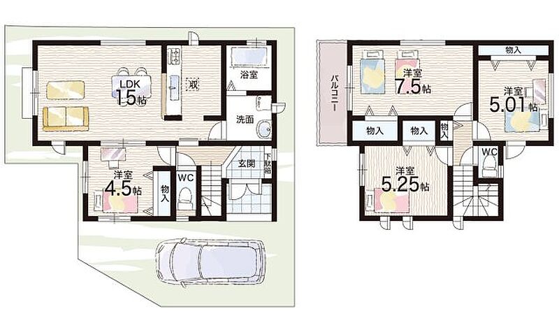 - ※完成予想図やCG合成画像は、門塀・植栽・庭・外観等、実際とは多少異なる場合があります。
