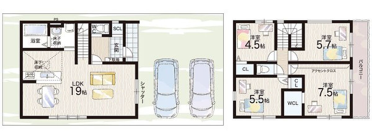 - ※完成予想図やCG合成画像は、門塀・植栽・庭・外観等、実際とは多少異なる場合があります。