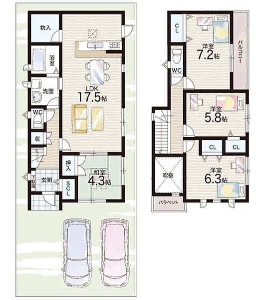 - ※完成予想図やCG合成画像は、門塀・植栽・庭・外観等、実際とは多少異なる場合があります。