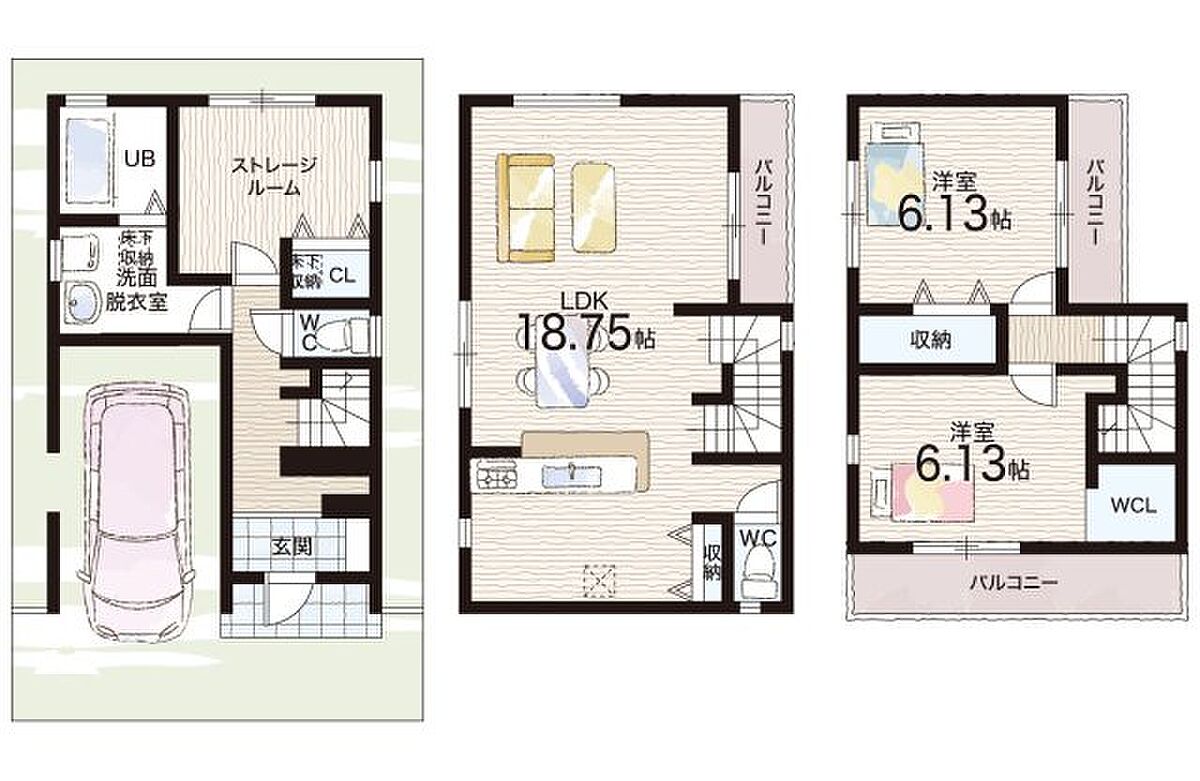 1区画 間取り 2LDK+S(納戸) 価格 2980万円 建物面積 99.89m2 土地面積 56.73m2