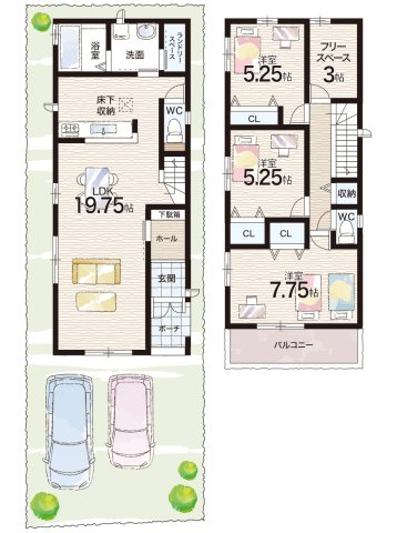 - ※完成予想図やCG合成画像は、門塀・植栽・庭・外観等、実際とは多少異なる場合があります。