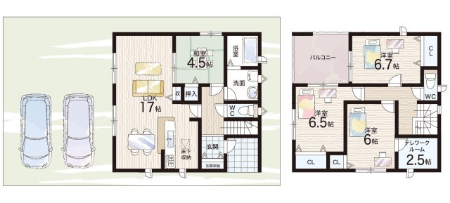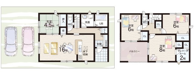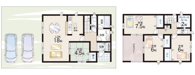 - ※完成予想図やCG合成画像は、門塀・植栽・庭・外観等、実際とは多少異なる場合があります。
