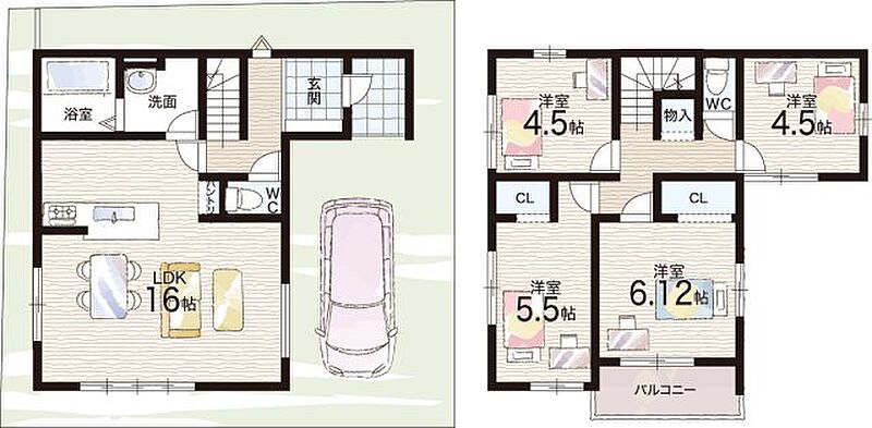 - ※完成予想図やCG合成画像は、門塀・植栽・庭・外観等、実際とは多少異なる場合があります。