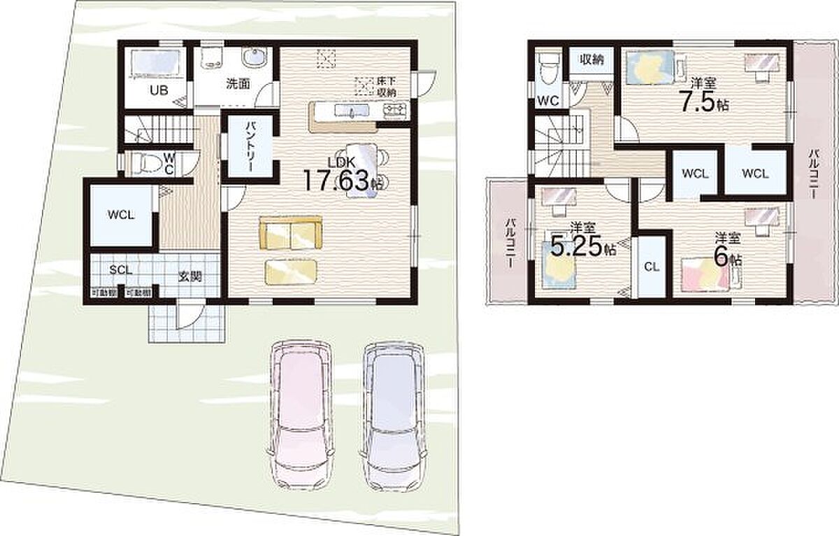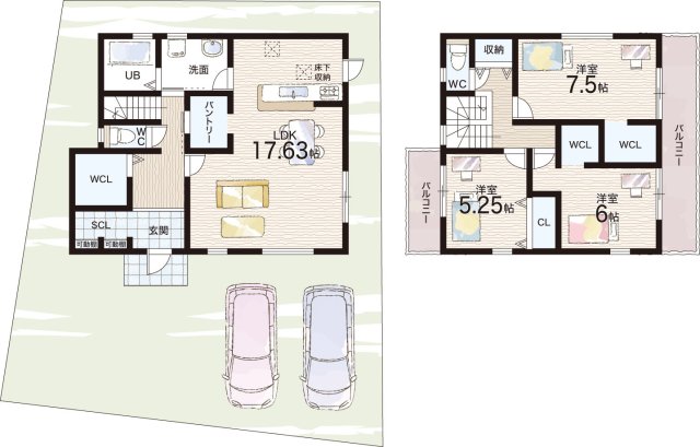 - ※完成予想図やCG合成画像は、門塀・植栽・庭・外観等、実際とは多少異なる場合があります。