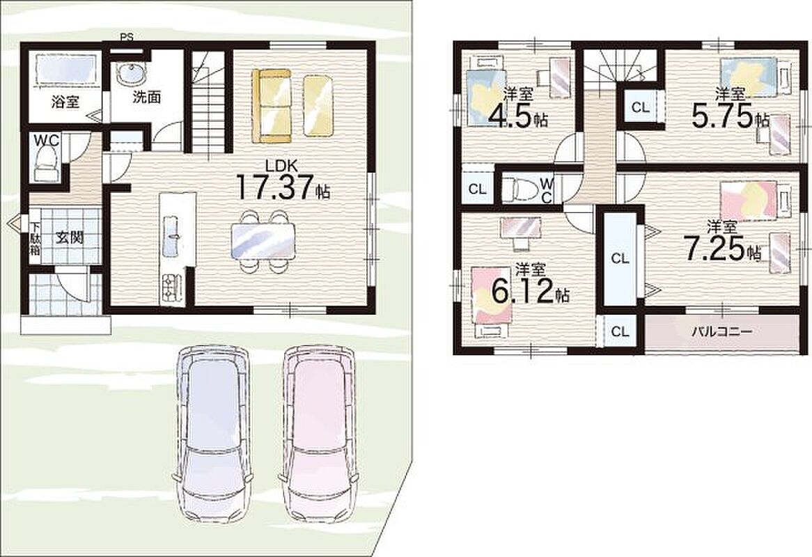 - ※完成予想図やCG合成画像は、門塀・植栽・庭・外観等、実際とは多少異なる場合があります。