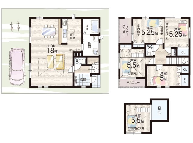 - ※完成予想図やCG合成画像は、門塀・植栽・庭・外観等、実際とは多少異なる場合があります。