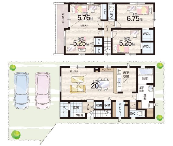 - ※完成予想図やCG合成画像は、門塀・植栽・庭・外観等、実際とは多少異なる場合があります。