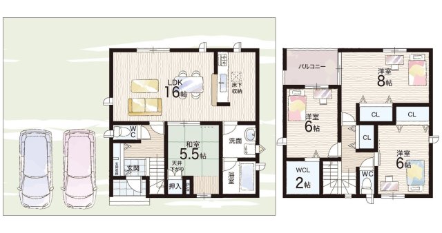 - ※完成予想図やCG合成画像は、門塀・植栽・庭・外観等、実際とは多少異なる場合があります。