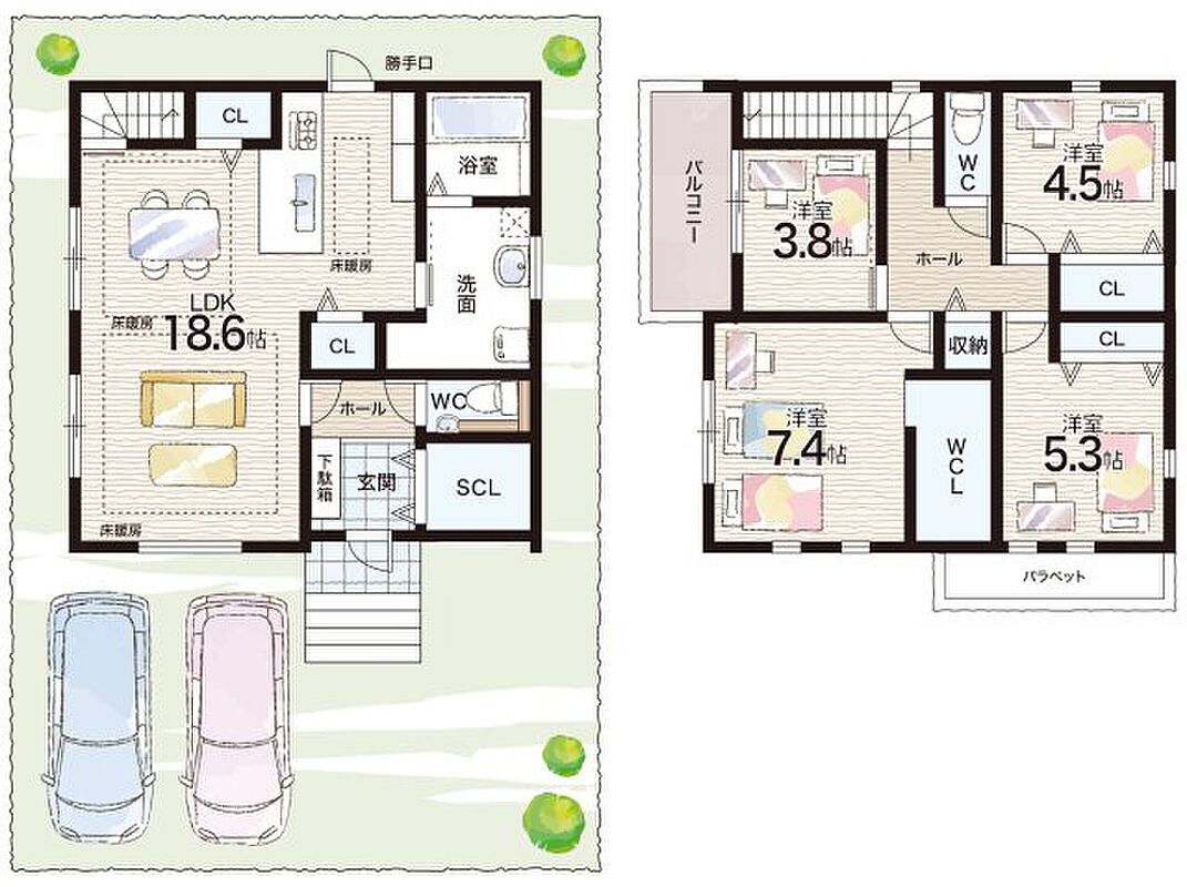 - ※完成予想図やCG合成画像は、門塀・植栽・庭・外観等、実際とは多少異なる場合があります。