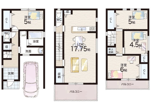 | 間取り | 4LDK | 建物構造 | 木造 地上3階建て |