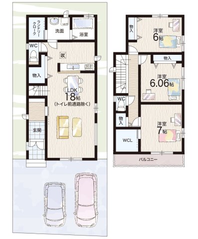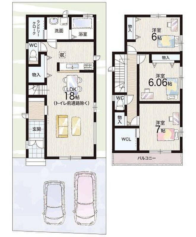 - ※完成予想図やCG合成画像は、門塀・植栽・庭・外観等、実際とは多少異なる場合があります。