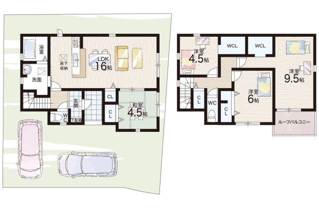 - ※完成予想図やCG合成画像は、門塀・植栽・庭・外観等、実際とは多少異なる場合があります。