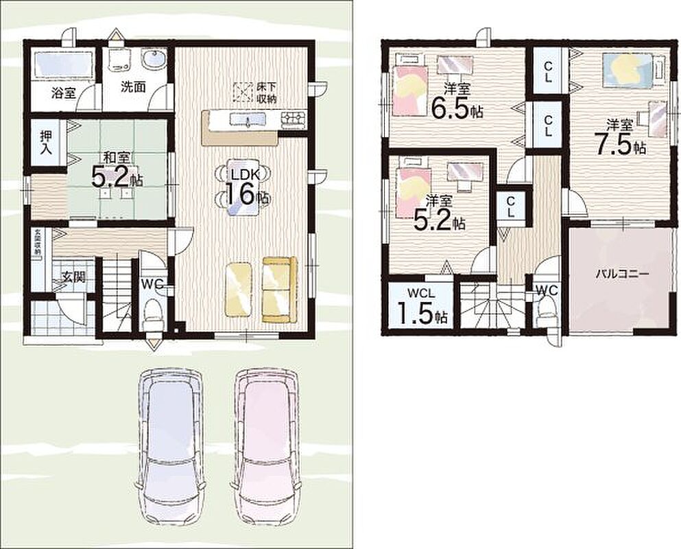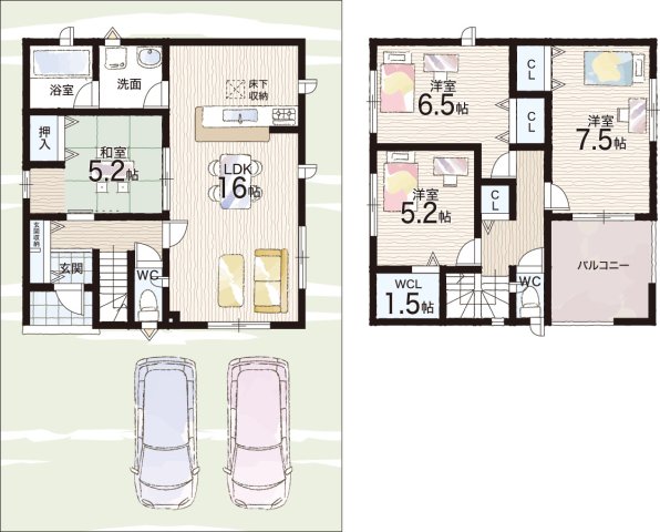- ※完成予想図やCG合成画像は、門塀・植栽・庭・外観等、実際とは多少異なる場合があります。