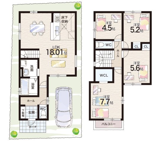 - ※完成予想図やCG合成画像は、門塀・植栽・庭・外観等、実際とは多少異なる場合があります。