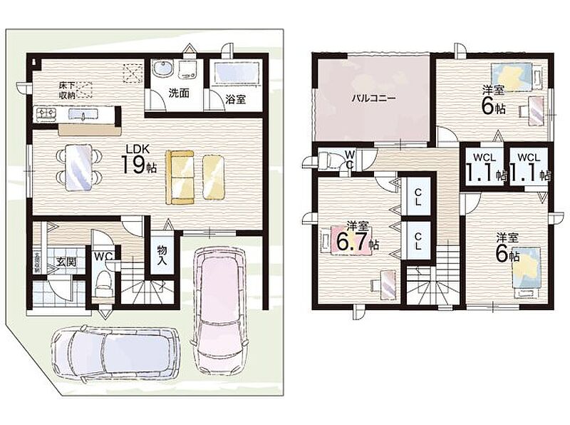 - ※完成予想図やCG合成画像は、門塀・植栽・庭・外観等、実際とは多少異なる場合があります。