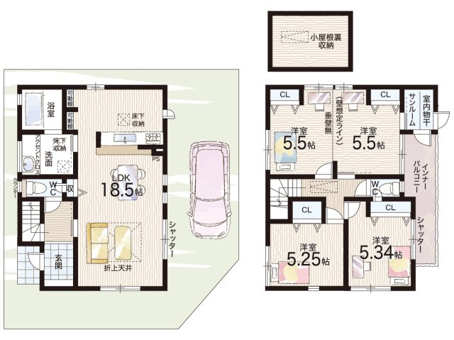 - ※完成予想図やCG合成画像は、門塀・植栽・庭・外観等、実際とは多少異なる場合があります。