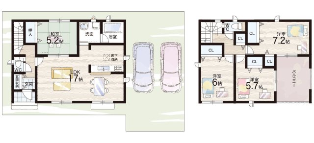 - ※完成予想図やCG合成画像は、門塀・植栽・庭・外観等、実際とは多少異なる場合があります。