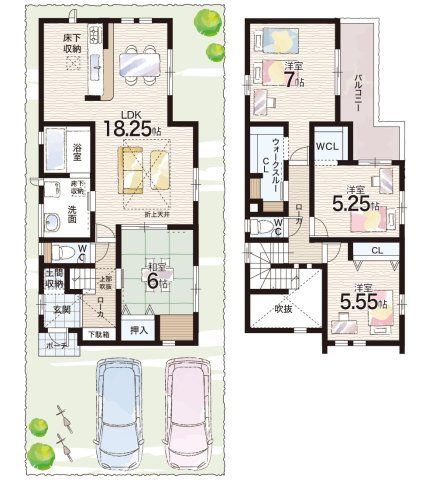 - ※完成予想図やCG合成画像は、門塀・植栽・庭・外観等、実際とは多少異なる場合があります。