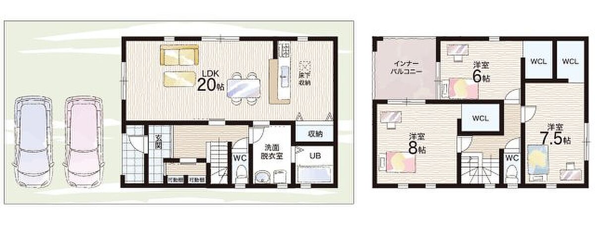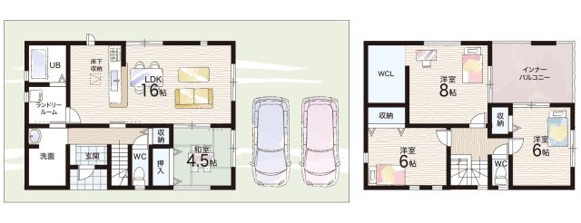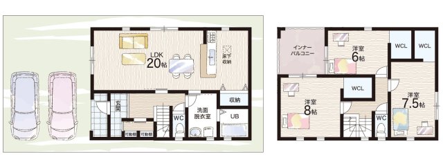 - ※完成予想図やCG合成画像は、門塀・植栽・庭・外観等、実際とは多少異なる場合があります。
