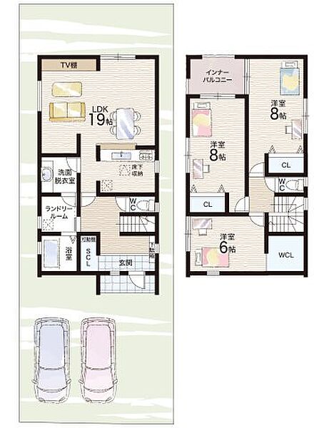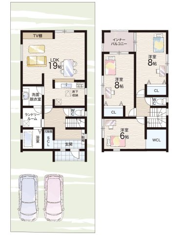 - ※完成予想図やCG合成画像は、門塀・植栽・庭・外観等、実際とは多少異なる場合があります。