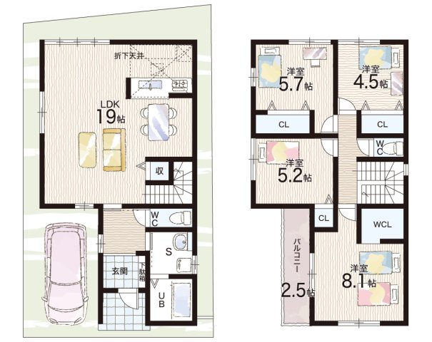 - ※完成予想図やCG合成画像は、門塀・植栽・庭・外観等、実際とは多少異なる場合があります。