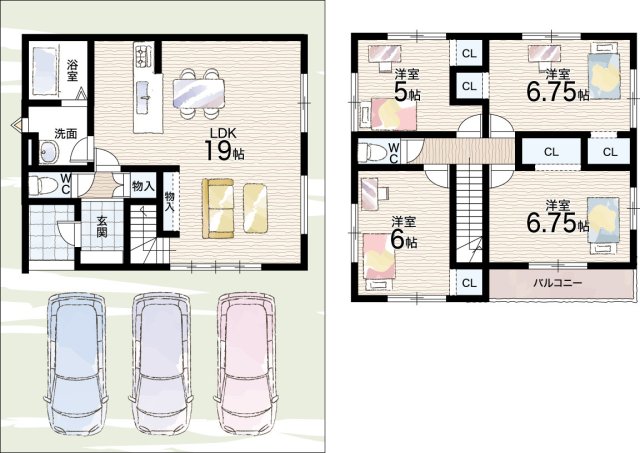 - ※完成予想図やCG合成画像は、門塀・植栽・庭・外観等、実際とは多少異なる場合があります。