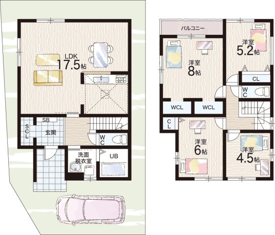 - ※完成予想図やCG合成画像は、門塀・植栽・庭・外観等、実際とは多少異なる場合があります。