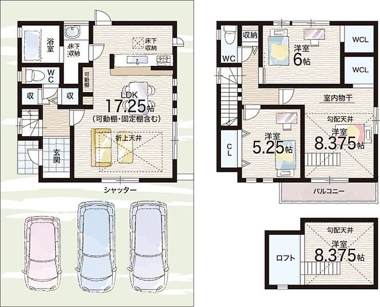 - ※完成予想図やCG合成画像は、門塀・植栽・庭・外観等、実際とは多少異なる場合があります。