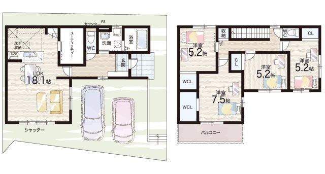 - ※完成予想図やCG合成画像は、門塀・植栽・庭・外観等、実際とは多少異なる場合があります。