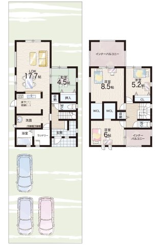 - ※完成予想図やCG合成画像は、門塀・植栽・庭・外観等、実際とは多少異なる場合があります。