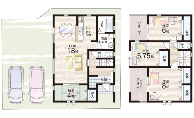 - ※完成予想図やCG合成画像は、門塀・植栽・庭・外観等、実際とは多少異なる場合があります。