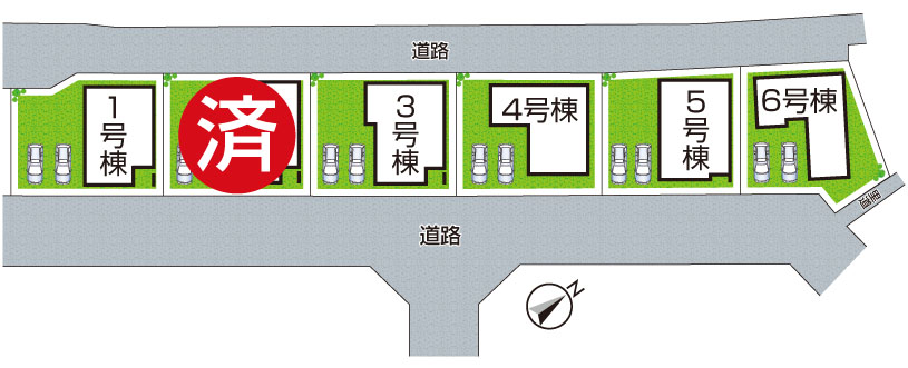 | 駐車場 | 2台 | 道路の幅員 | 南東側6.0m私道 |