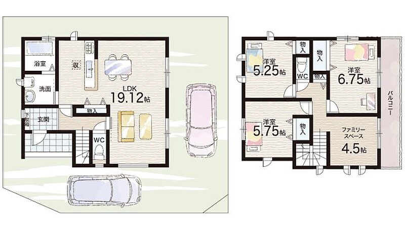 - ※完成予想図やCG合成画像は、門塀・植栽・庭・外観等、実際とは多少異なる場合があります。