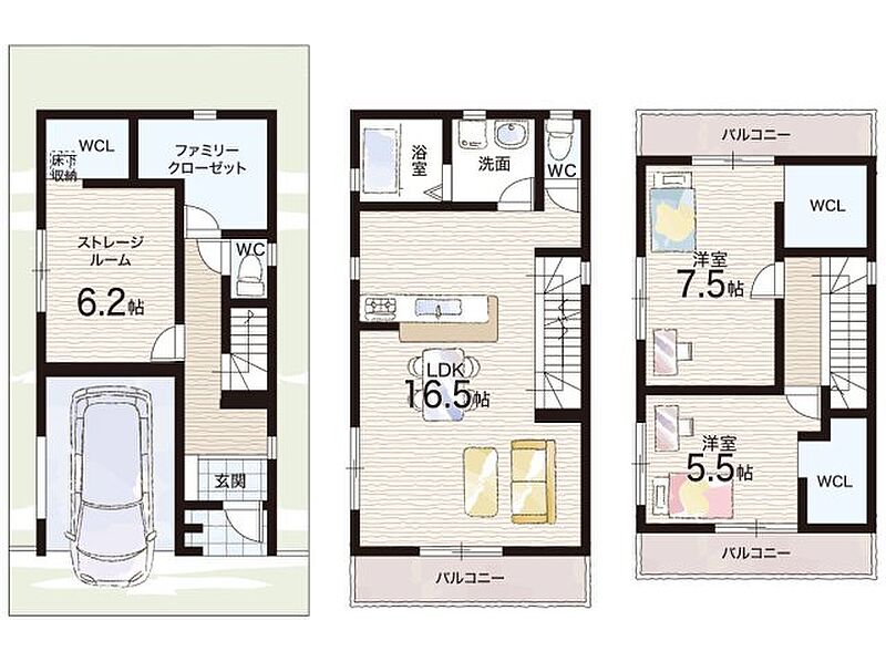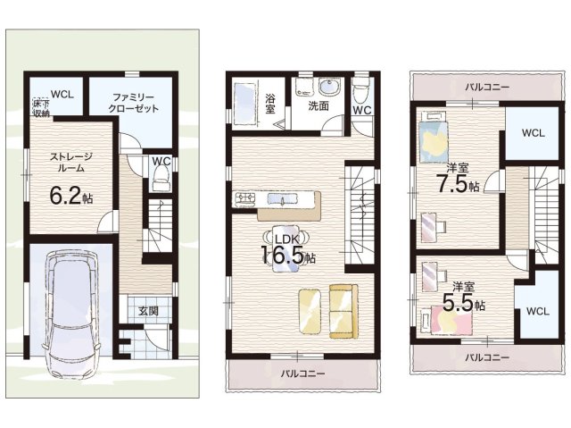 | 間取り | 2LDK+S(納戸) | 建物構造 | 木造 地上3階建て |