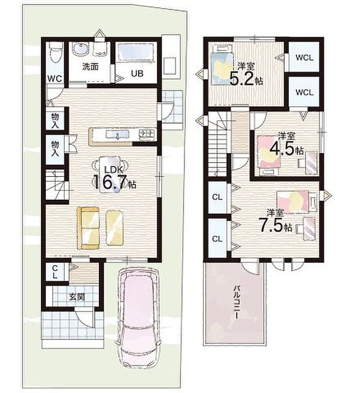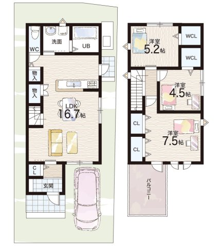 - ※完成予想図やCG合成画像は、門塀・植栽・庭・外観等、実際とは多少異なる場合があります。