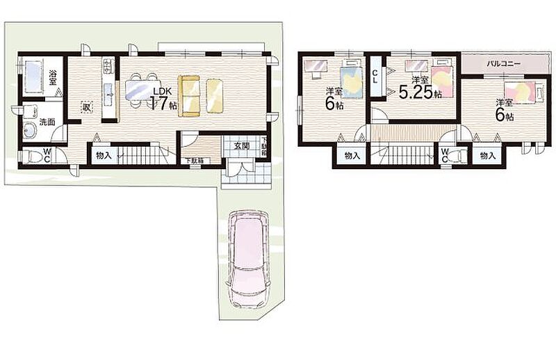 - ※完成予想図やCG合成画像は、門塀・植栽・庭・外観等、実際とは多少異なる場合があります。