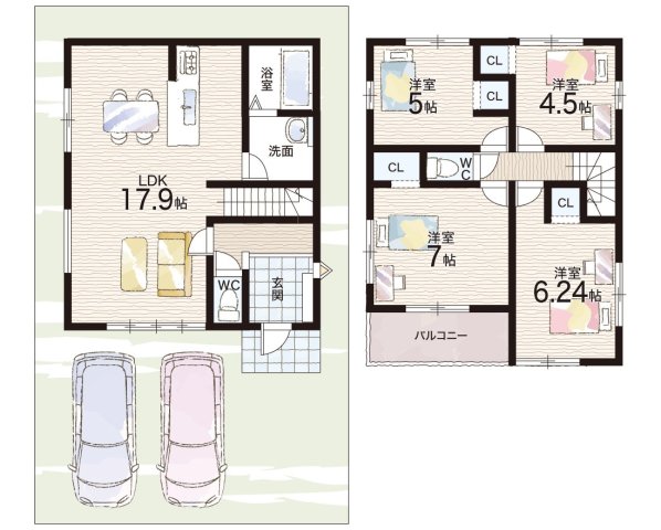 - ※完成予想図やCG合成画像は、門塀・植栽・庭・外観等、実際とは多少異なる場合があります。