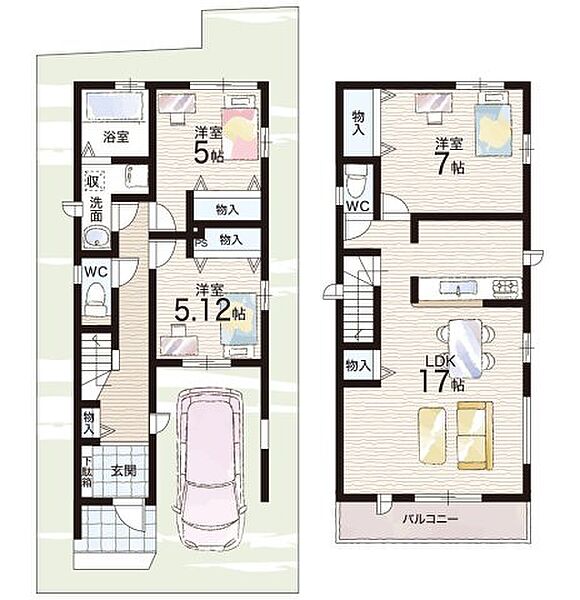 - ※完成予想図やCG合成画像は、門塀・植栽・庭・外観等、実際とは多少異なる場合があります。