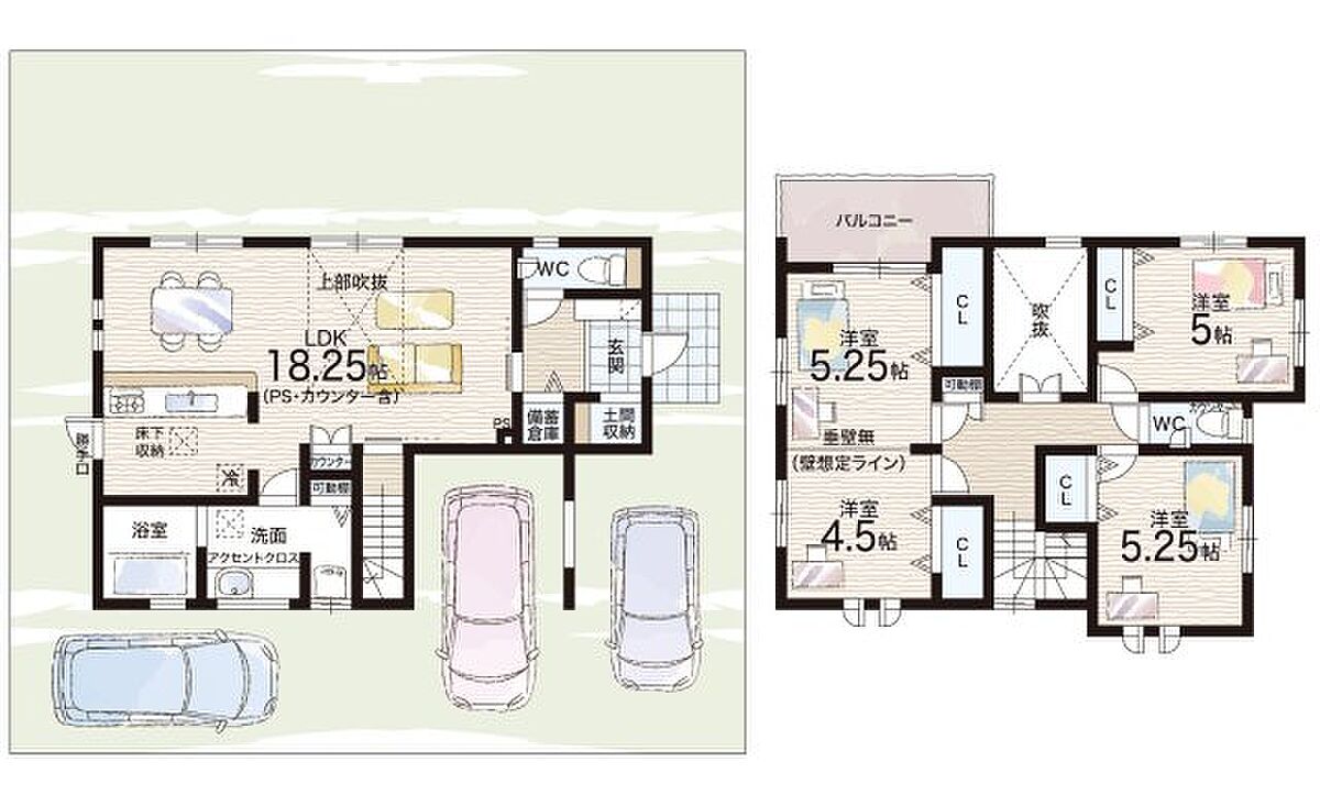 - ※完成予想図やCG合成画像は、門塀・植栽・庭・外観等、実際とは多少異なる場合があります。