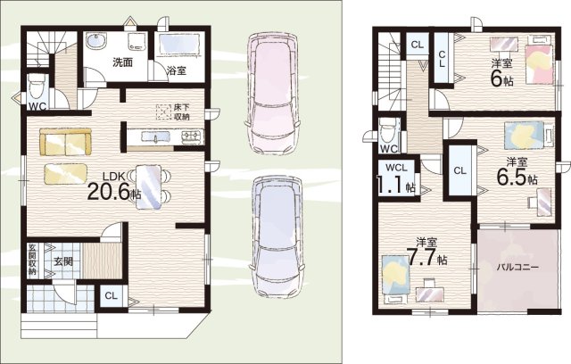 - ※完成予想図やCG合成画像は、門塀・植栽・庭・外観等、実際とは多少異なる場合があります。