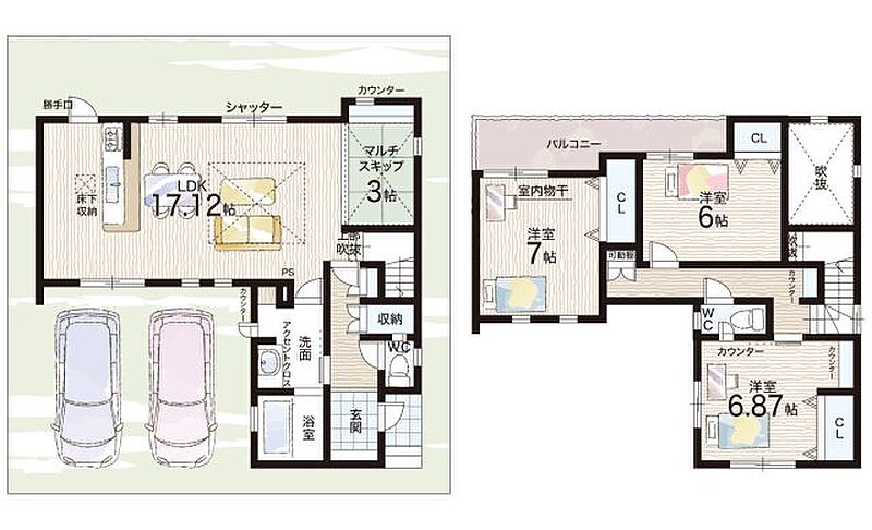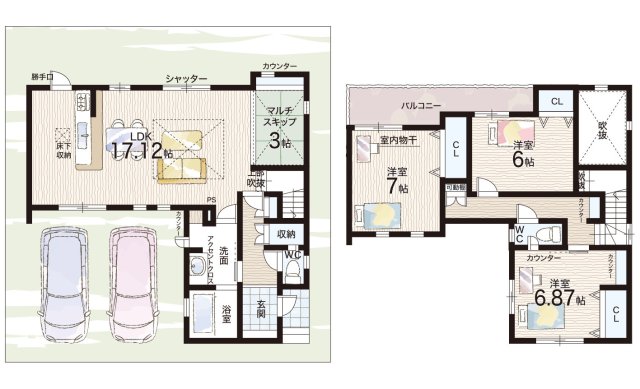 - ※完成予想図やCG合成画像は、門塀・植栽・庭・外観等、実際とは多少異なる場合があります。