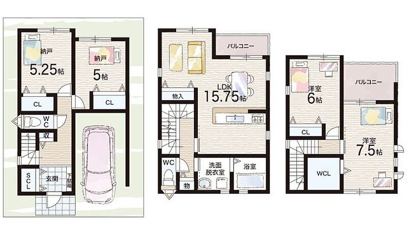 | 間取り | 2LDK+S(納戸) | 建物構造 | 木造 地上3階建て |