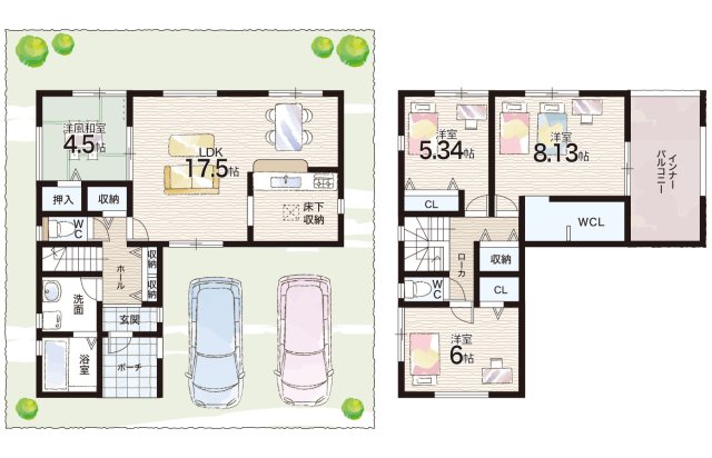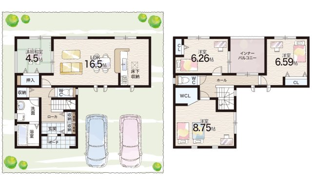 - ※完成予想図やCG合成画像は、門塀・植栽・庭・外観等、実際とは多少異なる場合があります。
