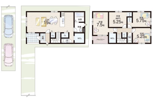 - ※完成予想図やCG合成画像は、門塀・植栽・庭・外観等、実際とは多少異なる場合があります。