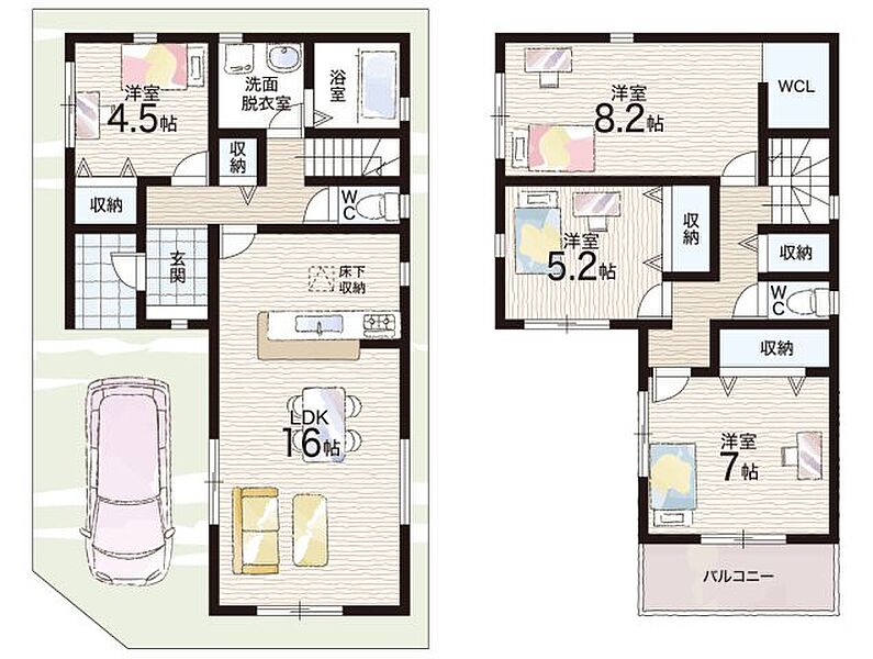 - ※完成予想図やCG合成画像は、門塀・植栽・庭・外観等、実際とは多少異なる場合があります。